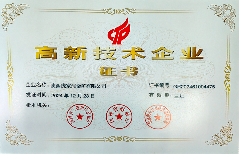 喜報!陜西龐家河金礦榮獲2024年度高新技術企業認證